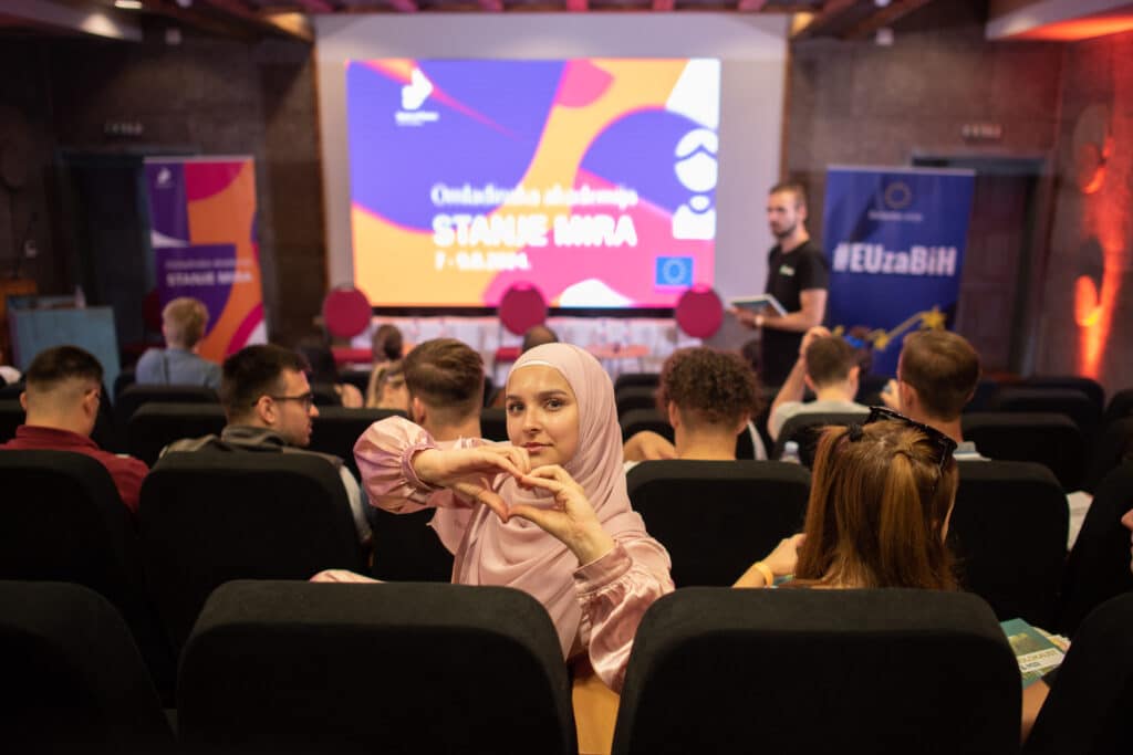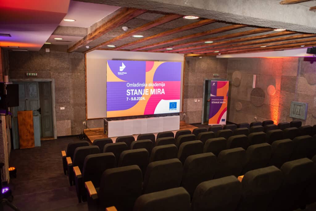 U augustu smo organizovali „Akademiju mira“. Ovaj trodnevni skup, održan od 7. do 9. augusta okupio je više od 50 mladih osoba iz svih dijelova Bosne i Hercegovine, podstičući pomirenje i dijalog. Interaktivne radionice, studijsko putovanje i bogat društveni program ne samo da su izgradili osjećaj zajedništva nego su i naglasili važnost mladih u oblikovanju evropske budućnosti Bosne i Hercegovine. Ovaj događaj smo organizovali u predivnom ambijentu Etno sela “Čardaci”, u Vitez. Naš tim uspješno je odgovorio izazovu organizacije ovako bitnog događaja, uključujući organizaciju smještaja i transporta, zakup i pripremu lokacije, štampanje materijala, tehničku i PR podršku.