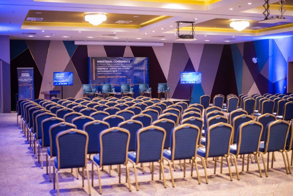 Ministarska konferencija o pregovorima o pristupanju zemalja Zapadnog Balkana EU, održana u Sarajevu 27. juna 2024. godine, bila je prilika da pokažemo našu sposobnost realizacije ambicioznih projekata. Od razvoja prilagođenih vizuelnih identiteta do koordinacije tehničkih i logističkih aspekata hibridnog događaja u hotelu Swissotel, svaki detalj bio je pažljivo planiran od strane našeg event tima. Brendiranje konferencije, tehnička podrška, fotografisanje, prijenos uživo i sve ostalo što je potrebno za organizaciju konferencije na ovom nivou osigurali su maksimalnu vidljivost i omogućili učesnicima da diskutuju o reformi pravosuđa i temeljnim pravima.
