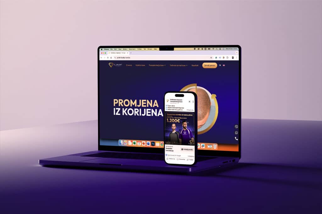 Poliklinika Dijamant je u toku 2023. godine prepoznala potrebu za značajnim unapređenjem kako bi pratila svoj ambiciozni plan širenja usluge transplantacije kose u Sarajevu. Kao novi igrač na tržištu kada se radi o transplantaciji kose, njihova digitalna prisutnost i brend nisu dovoljno odražavali kvalitet usluga koje nude. Cilj je bio jasan – postati regionalni lider u ovoj specifičnoj oblasti, privući veći broj pacijenata i podići svijest o beneficijama transplantacije kose.